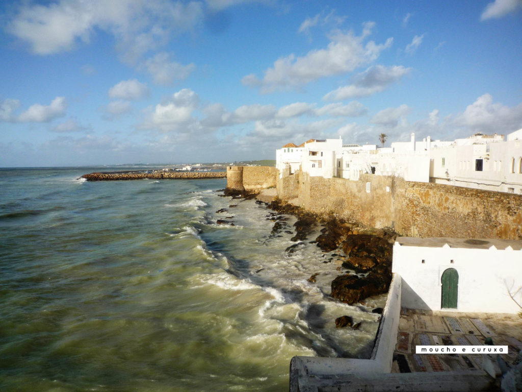 Antes continuar el recorrido y acceder a la medina a través de esta puerta, se puede subir hasta el dique del puerto y avanzar por él, ya que ofrece buenas vistas sobre la muralla y la pequeña playa que hay bajo ella. La muralla de Assilah comenzó a ser construida por los portugueses en el siglo XV, y recuerda ciertamente a otras como la de El Jadida o Esssaouira, por donde también pasaron los portugueses.
